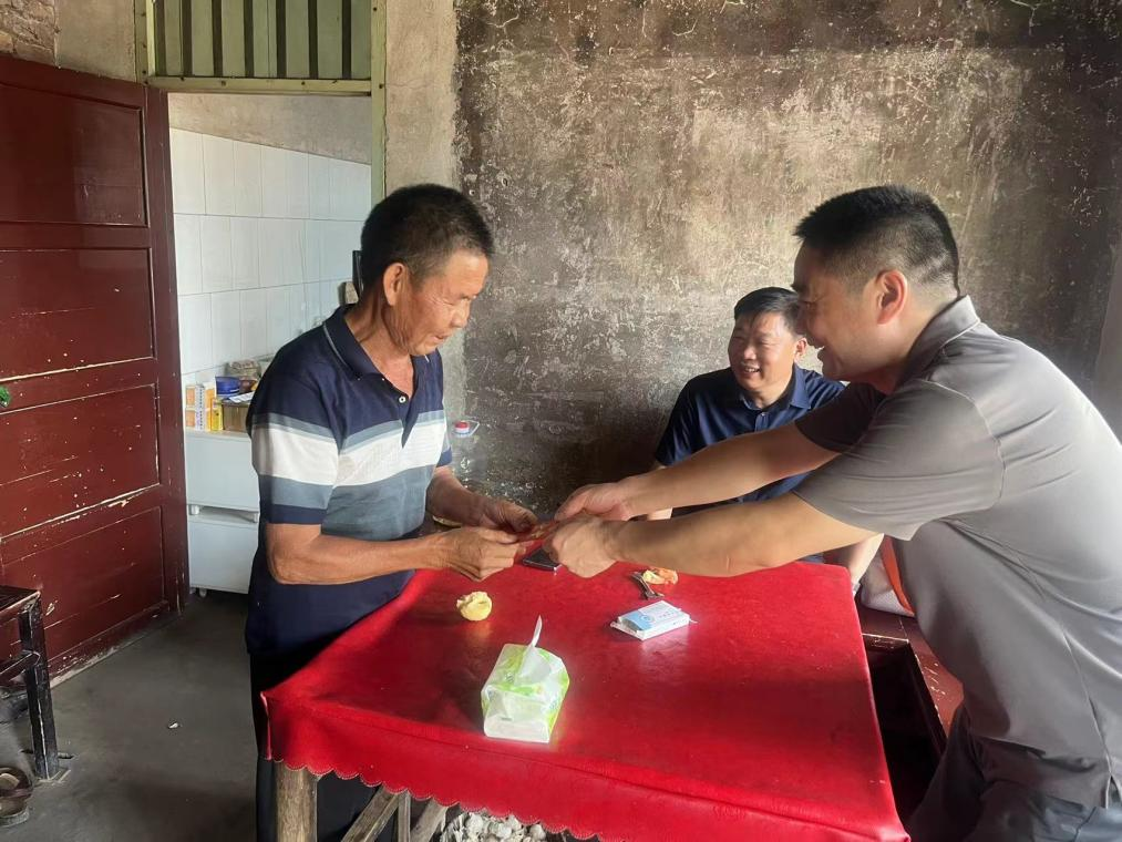 走訪完盧家村,陽文林一行馬不停蹄的趕往鄉(xiāng)村振興幫扶村—新化縣桑梓鎮(zhèn)大田村,考察集團(tuán)公司今年在大田村的幫扶項(xiàng)目現(xiàn)場(chǎng),走訪慰問結(jié)對(duì)幫扶監(jiān)測(cè)戶,并為每一個(gè)監(jiān)測(cè)戶送上慰問金。走訪結(jié)束后,陽文林一行與鎮(zhèn)、村負(fù)責(zé)人和幫扶工作隊(duì)座談,了解幫扶工作情況,為如何做好幫扶工作助力獻(xiàn)策。