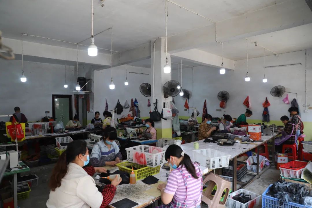 (圖為大田村村民在家門口的駿翔皮具廠務工)